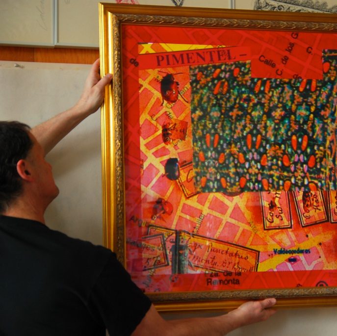 Today at the gallery I rearranged some items in the storage room and cleaned up a bit. After an hour or so of that I was able to handle prints by Salvador Dali and use the 3d mirror glasses that you can see in the photo. I also helped set up for a meeting involving planning out 2013's schedule for the gallery. I was able to participate in the meeting as I am having a show in March and April of 2013 in the Focus gallery.